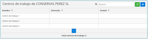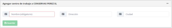 - Añadir, modificar o quitar centros de trabajo (al pinchar sobre el último botón verde, se desplegará el apartado con los centros de trabajo.