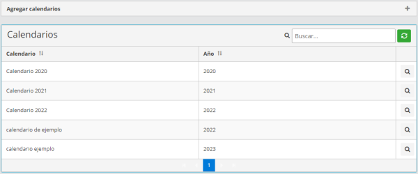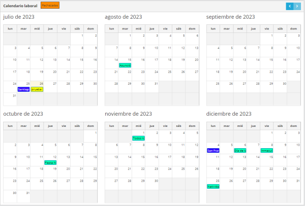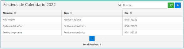 Con el botón de la lupa de la derecha, podremos consultar los festivos que iremos añadiendo al calendario laboral.
