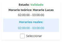 - En la parte inferior de la tarjeta, tendremos una casilla Seleccionar para poder marcar esos días y aplicar cambios de horario.