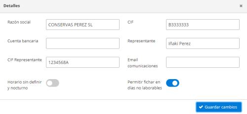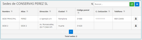 En este apartado, nos aparecerán los datos de nuestra Empresa (Razón social, CIF, Email, Cuenta bancaria, así como el representante asignado y la sede.