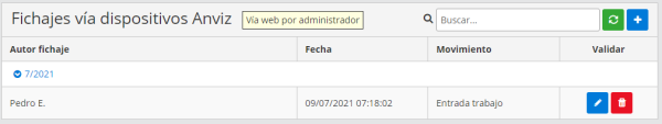 - Por último, si el usuario tiene configurado el modo fichaje manual con Anviz, veríamos lo siguiente.