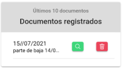Debajo, nos aparecerán todos los documentos que hayamos ido subiendo, los cuales podremos visualizarlos con el botón verde de la lupa, o eliminarlos con el botón rojo de la papelera.