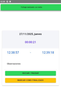 Cuando terminemos definitivamente nuestra jornada, pulsaremos sobre MARCAR COMO FINALIZADO. Una vez hecho esto, no se podrán realizar más movimientos ese día.